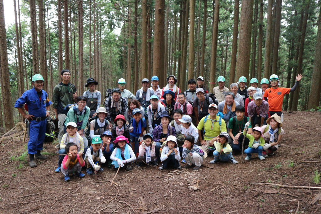 現地に到着。里仁会の皆さんが先回りしていて、間伐のデモンストレーションが始まりました。
