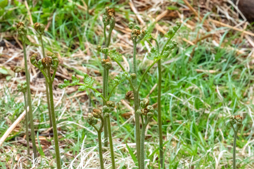 ワラビは伸びてしまうと茎が筋張ってしまって食べられなくなります。軽くつまんでポキンと折れるのが食べられるワラビなんです。