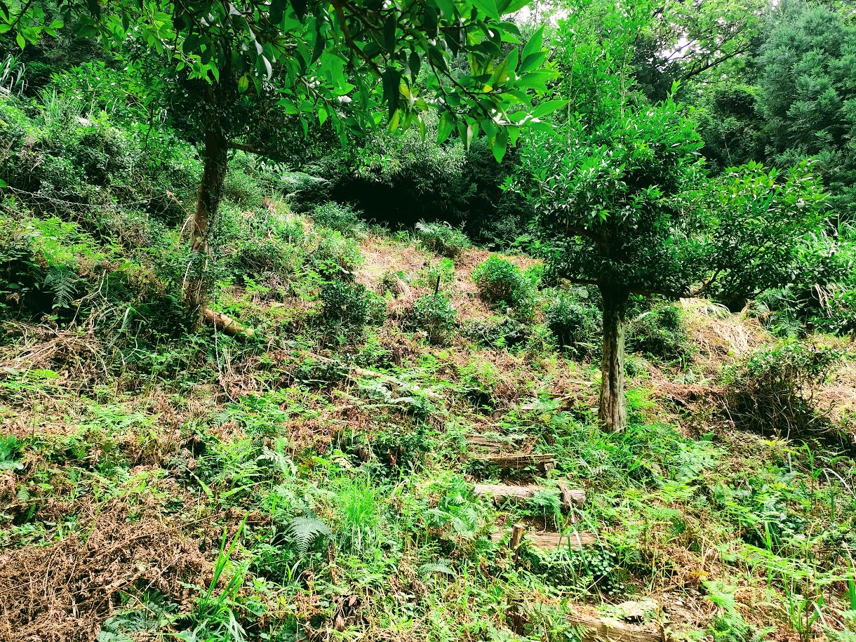 その隙間から新しい草が芽生えていますが、茶ノ木がはっきりと見えますね。