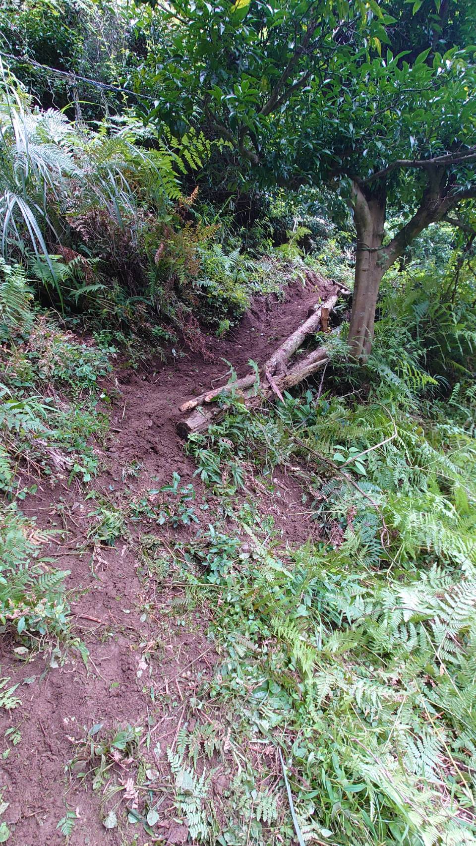 斜面の上の方からお茶畑にアプローチできるように道をつけました。